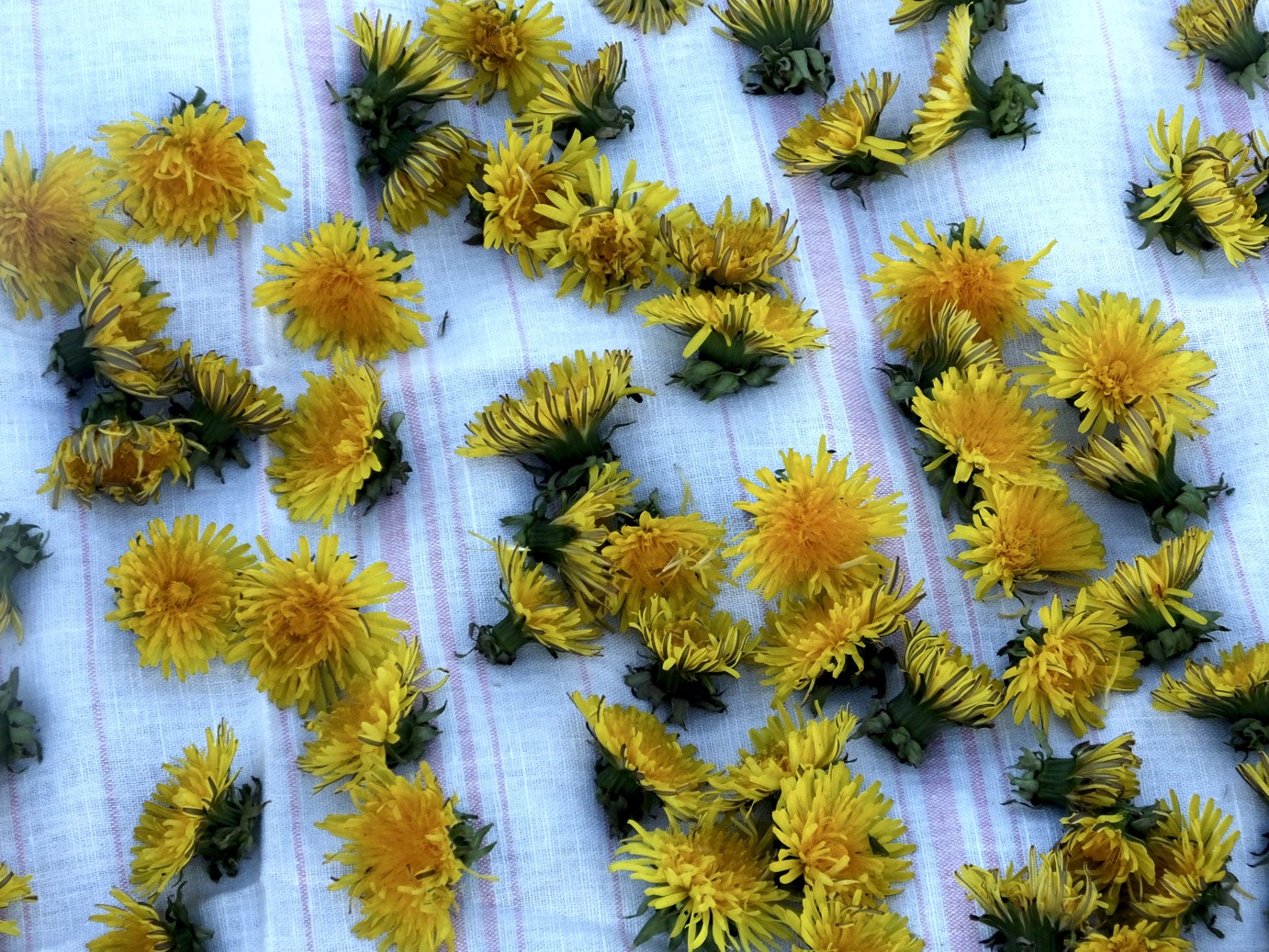 50 żółtych kwiatów mniszka (odciąć zielone części)
